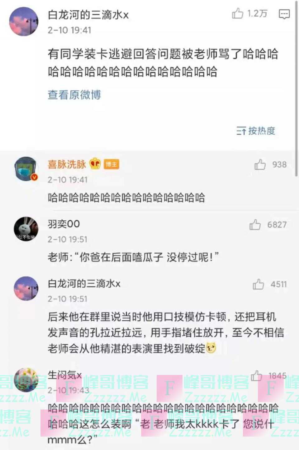 下面请欣赏纪录片《在家上课》之名场面合集!笑死我了哈哈哈哈!》发布于2020-2-15