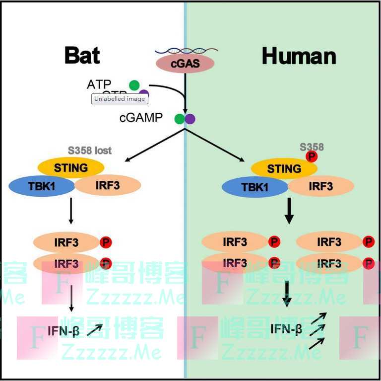 ?这套机制对多数哺乳动物都很适用,唯独对蝙蝠不适用。作为哺乳动物中唯一的空军,蝙蝠体温超过40℃,代谢率非常高,经常有DNA损伤并被释放到细胞质内。如果蝙蝠的机体一发现细胞质游离DNA片段就启动炎症反应,那么蝙蝠整天不是这里发炎就是那里发炎,将会对它的正常组织细胞造成极大伤害。