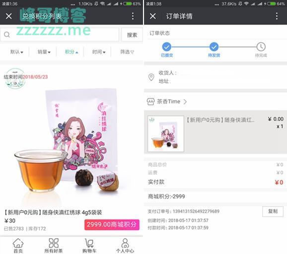 微信关注公众号 茶香Time 点击推送的链接 0元购物