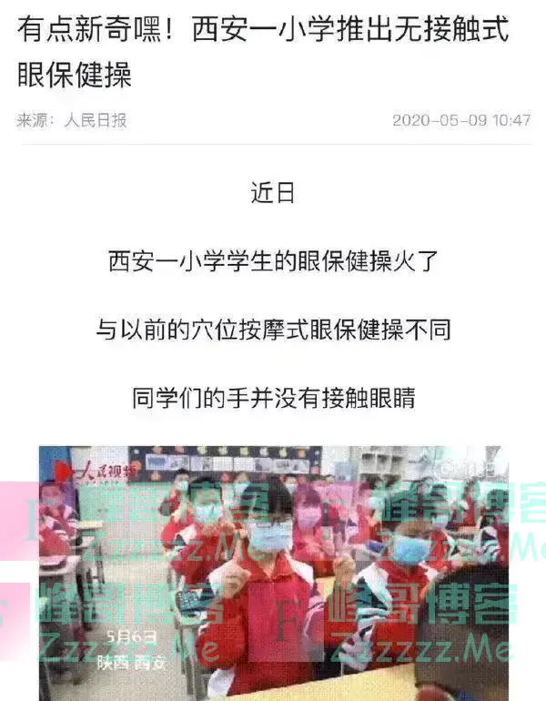 就想问问这样的眼保健操意义究竟何在?眼保健操不应该就是在眼部周围做按摩,可是如果推出了无接触式眼保健操,最后是按摩接触了空气吗?哈哈哈这样的行为也是够迷惑的,感觉是在手部运动还差不多~