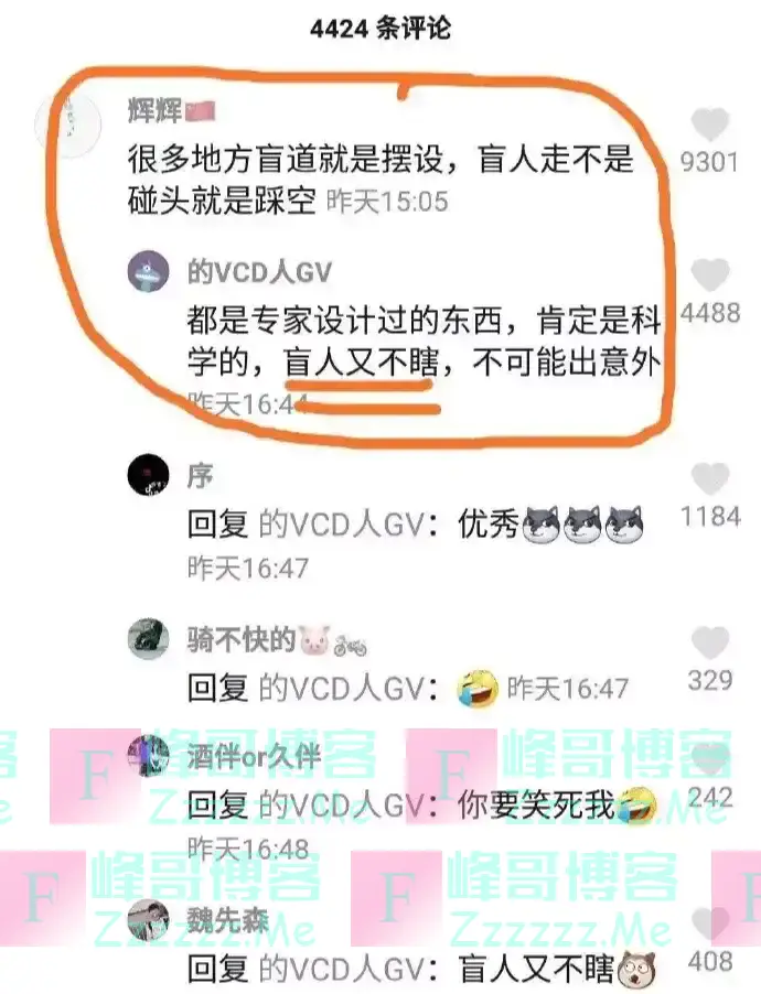 小的时候我也一直搞不懂,盲道到底是个什么东西?后来长大之后才听别人说,那是专门为盲人设计的,网友说的话也是让人笑破肚皮,网上冲浪储备一点文化知识再来喷人吧,要不然会被人笑掉大牙的!盲人要是看不见,那还叫盲人吗?