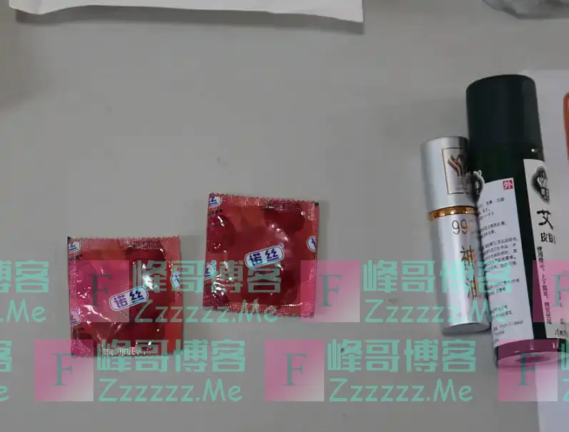 (图为警方从王兴夫身上搜出的避孕套和神油)