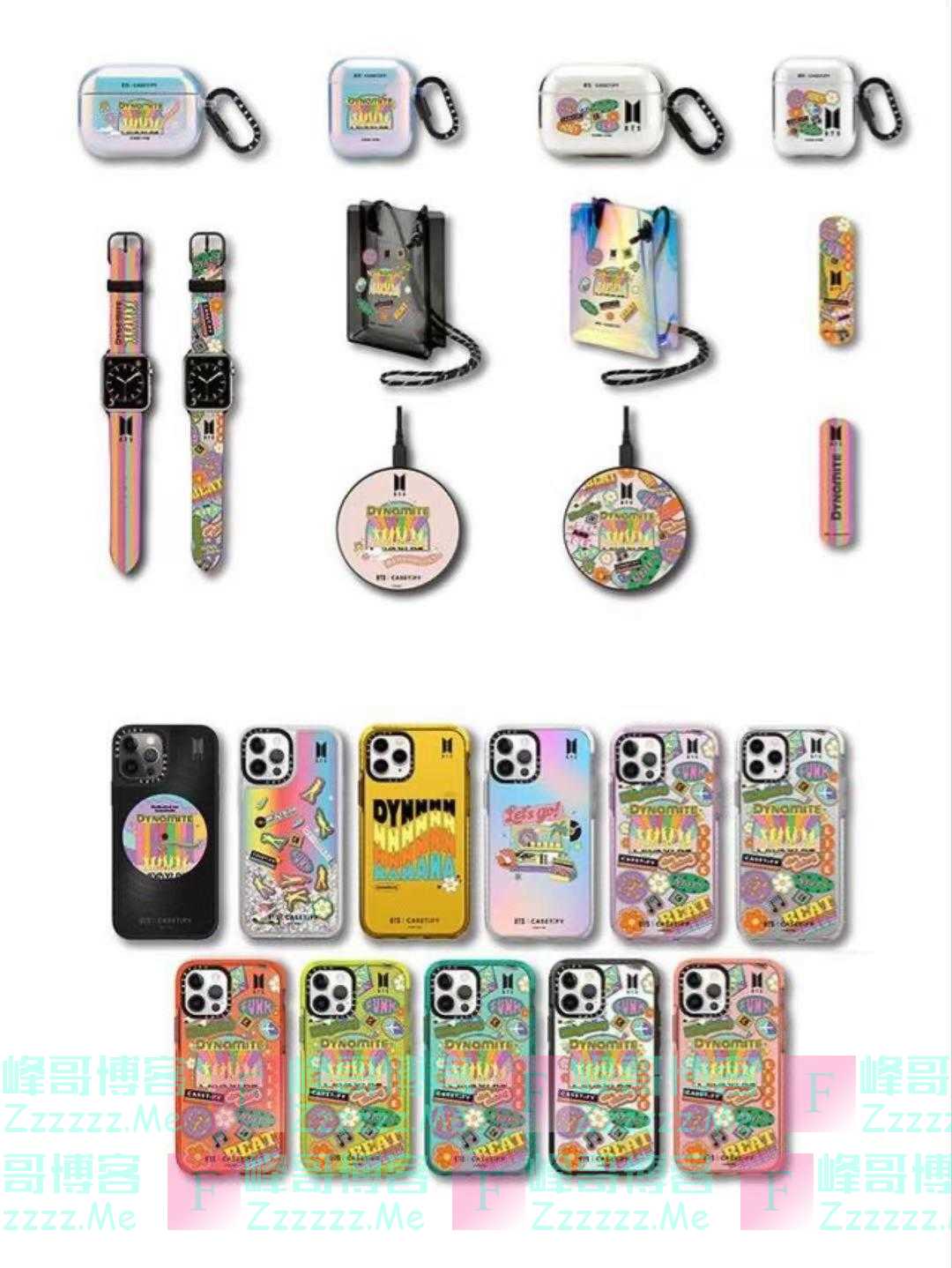 《Dynamite》的曲风充斥着欢乐氛围,CASETiFY以此为灵感与BTS防弹少年团联名,推出了一系列具有趣味感的配件。缤纷的插画、成员的剪影、歌曲MV中出现的甜甜圈店等元素,被印在了手机壳、耳机套上。