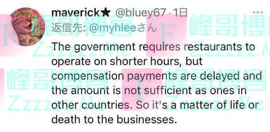 不过,也有日本网友开始为酒馆和顾客开脱责任:“虽然日本政府要求饮食店缩短营业时间,但因为补助金发放被推迟,或是发放的金额与其他国家比并不够。所以,这是对日本企业来说生死攸关的问题”。
