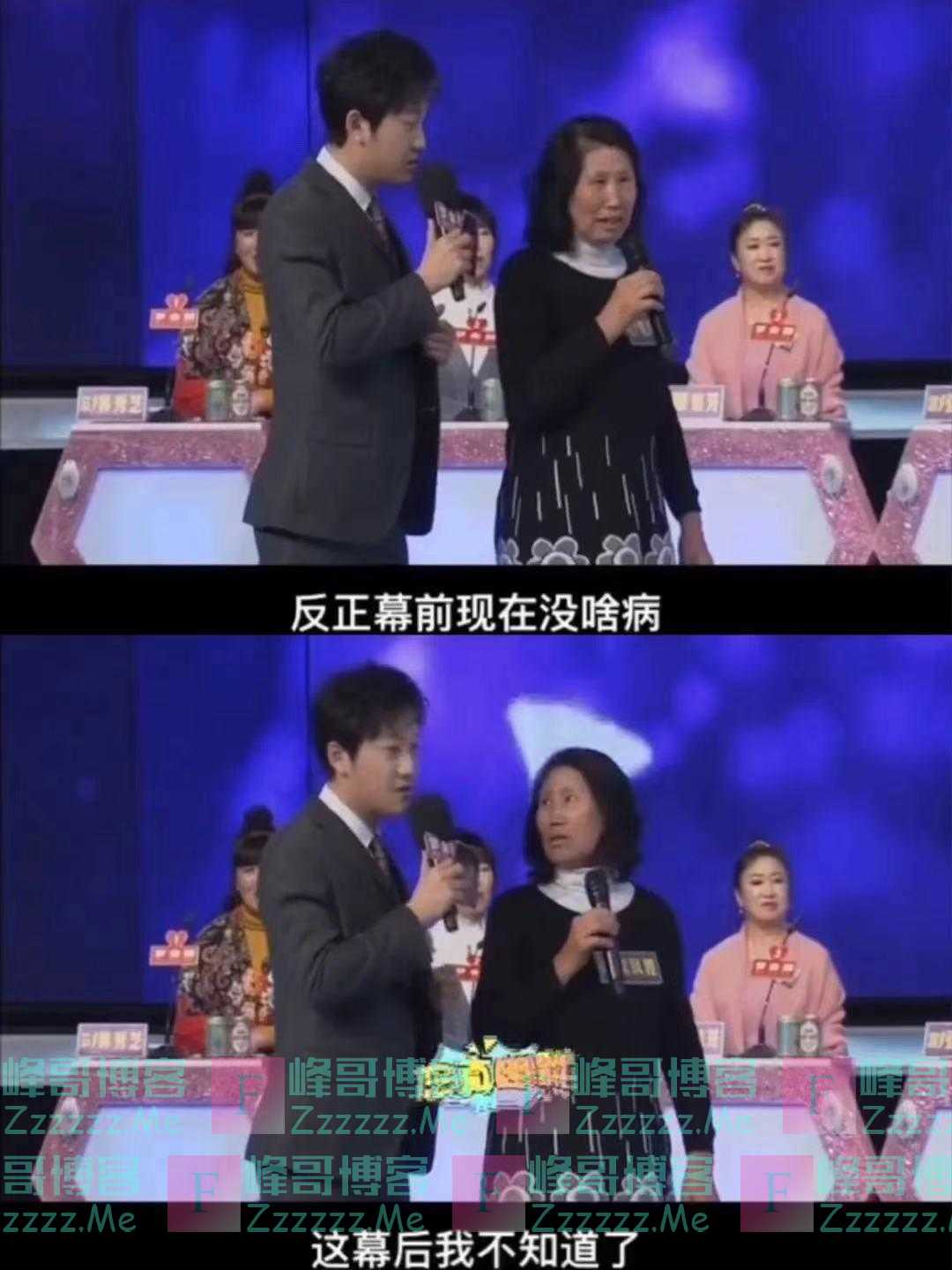 节目也有段子手。在《相亲相爱》中,主持人问女嘉宾曾经得过什么病吗?一位大姨说:“反正幕前没啥病,这幕后我不知道了。”