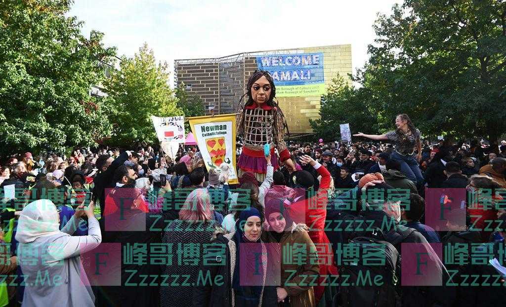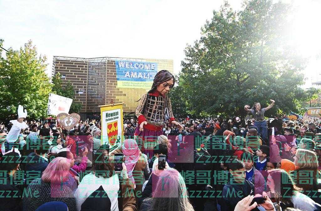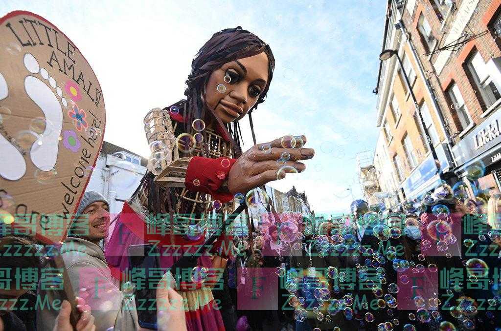 巨大的难民木偶“阿玛尔”在穿越欧洲后抵达伦敦》发布于2021-10-23