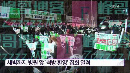 朴槿惠获释,支持者挥舞应援棒庆祝