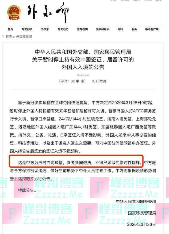 No.1暂停持有效中国签证、居留许可的外国人入境外交部、国家移民管理局发布公告,自2020年3月28日0时起,暂停持有效...